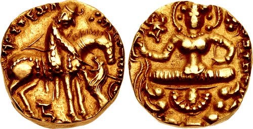 And yet, the coins used by Huns and later the Aulikaras, continue to be struck in the Gupta style, using the Brahmi script patronized by the Guptas. Weights, measures and coinage - the essential standards of trade in the globalized Late Classical India will continue to follow Gupta patterns for another four decades, almost 50 years after the House of Chandragupta Vikramaditya ceased to exist. Even in its absence, the memory of Guptas was potent enough to be appropriated by their successor states in their currencies. After all, as rulers, Toramana, Mihirakula, Yashodharman - the warlord kings of the 6th century CE, couldn’t hold a candle to the justice, prosperity and unity ushered in by the Gupta Golden Age (350 CE- 460 CE).